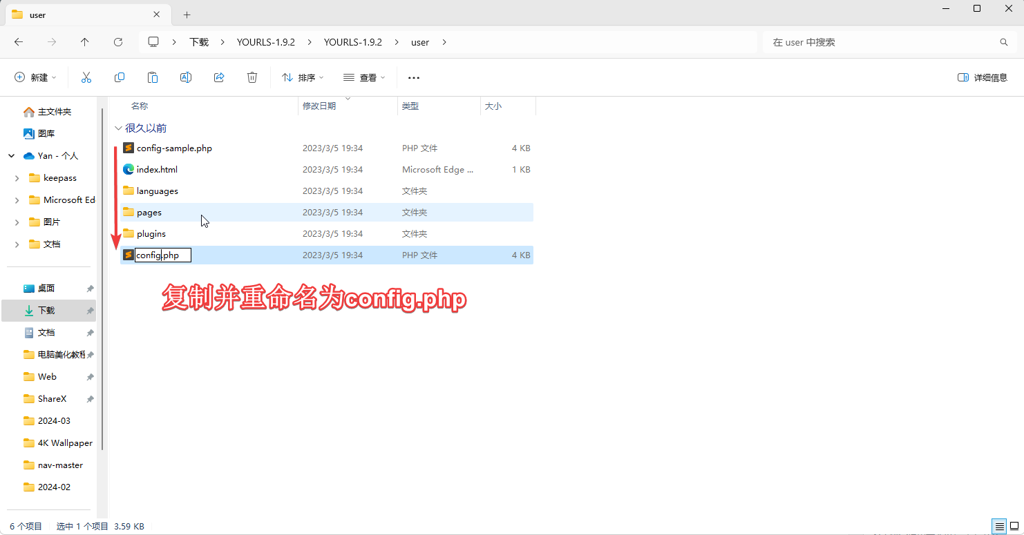 1.复制user/config-sample.php 然后重命名为 user/config.php