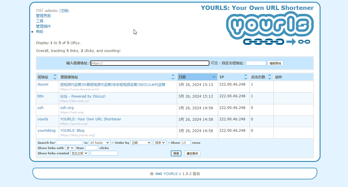 GitHub官网下载源码,下载地址:https://github.com/YOURLS/YOURLS